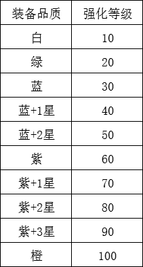 装备每强化一级都会提升装备的基础属性,不同品质的装备其强化上限等级也不同: