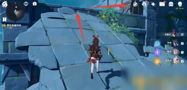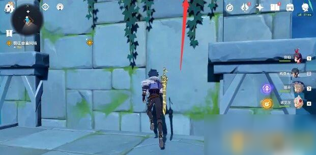 5、最后从面前的墙往上爬,即可看到七天神像,前往垂直风场任务完成。