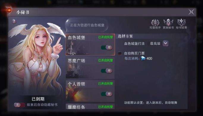 小秘书可以通过你的设置按照你的意志,完成任务和顺序,并且购买额外次数,但是需要逐个需要设置,在通过托管排序,逐个完成任务,设置完毕之后点击开启后就会自动进行,不影响大家聊天和培养锻造等操作,让大家任务培养两不耽误。