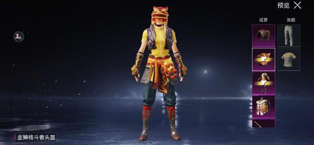 这是粉丝的舞狮套装,3级头神似舞狮头,皮肤以黄色为底,增加了大量的中国古风的修饰品,上身是马甲,下身是狮子面具和金属铠甲,看起来干练精简,明显就是练武之人。
