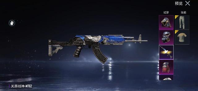 这是同系列的武器M762皮肤,整体以黑色为底,加入蓝白色衬托,表面颜色黯淡粗糙,看起来极具复古风格,枪身看起来饱经沧桑,整体颜值可以肯定。