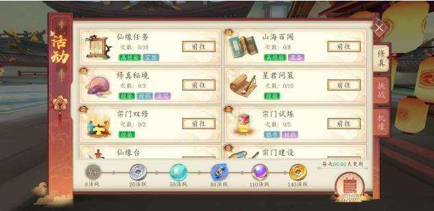 修真部分的活动难度大,任务耗时少,奖励非常丰厚,属于日常活动类型。