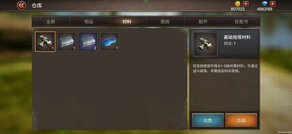 材料:用来存放各种品质的材料,也可以用来合成高品质材料,或者出售材料获取金币。最高品质的材料没有合成按钮。