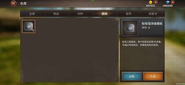 图纸:用来存放各种品质的图纸,用来合成高品质图纸,或者出售图纸获取金币。最高品质的图纸没有合成按钮。