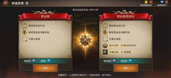 黄金版,达成相应等级后不仅可以获得白银版的所有奖励,还可以获得黄金版奖励更多的金币、钻石、精英学院招募券、乘员经验战场道具、坦克部件材料宝箱、配件宝箱、改装图纸宝箱、角色改名卡、军团改名卡、VIP卡、技能书等等,更有绝版的赛季头像框、赛季喷图、赛季贴花、绝版的坦克赛季涂装!这些赛季奖励的个性化的涂装和装扮,如果错过了都是无法再获得的,所以如果碰到了你喜欢的涂装,就果断入手吧!
