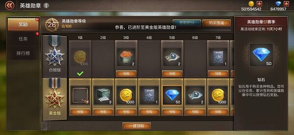 免费的白银版,达成相应等级后可以获得大量金币、钻石、乘员经验道具、配件宝箱、材料宝箱,还有金币收益卡、战斗掉落双倍卡,甚至还有下赛季的积分卡。