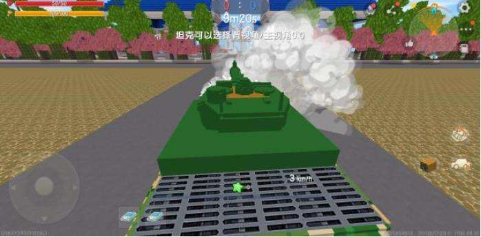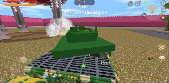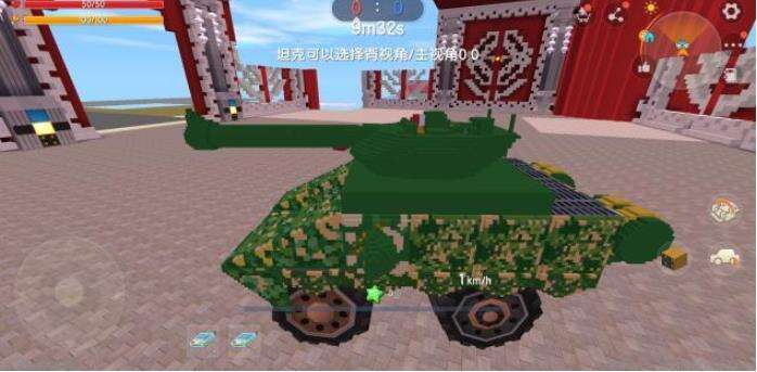 这辆坦克车十分霸道!拥有无限弹药和超高的速度,并且还有"自主翻身"的功能,十分喜感。我们驾驶上这辆坦克车后,仍然通过转轮来控制方向和速度,下方的两个遥控器按钮就是坦克主动转向瞄准的装置,当我们看到敌人之后,只需要转动车头然后开炮就可以消灭敌人了!