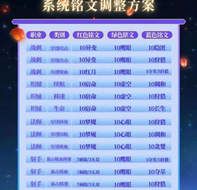 好几套系统铭文都可以供玩家所选择,这次更新之后,官方会调整系统铭文搭配。不同位置的英雄,铭文类别也不一样。每个英雄对于铭文属性的要求也不一致,系统铭文的搭配调整,正是按照不同英雄对于不同属性的要求来的。