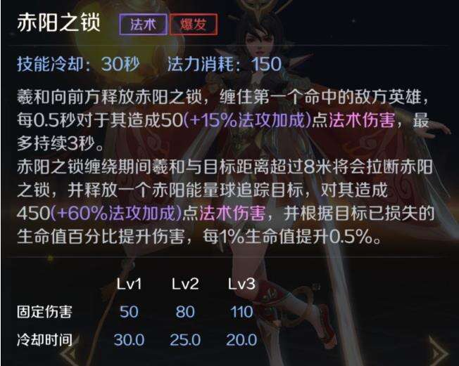 该技能的三个火球可以自动跟踪位移着陆点附近的目标,“火球自动跟踪有效射程”的半径约为羲和“总攻击距离”的四分之三(略短于总攻击距离)。