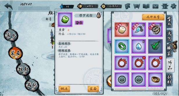 然后是修罗戒指,我看到很多攻略贴推荐前期用这个装备,但是用这个戒指推地图没用,因为这个戒指需要连续连击才能获得攻击加成,刷地图的时候很难刷高连击。就算能刷20连击,也是很高的,很快就会掉。前期没有羊脂板指可以拿,可以换成板油指。然而,修罗戒指在打大公鸡时非常有用,所以我把这个戒指戴了起来。在打大公鸡的时候,修罗戒指被换成了洗魂链,因为有衣服,它可以不断地保持满血。输出爆炸,注意大公鸡只打15体,不打30体,浪费体力,容易死,给经验少。