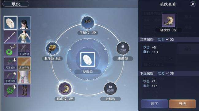 琅纹是利用不同的动物符文在装备部件上绣刻、搭配和升级为装备提高属性。