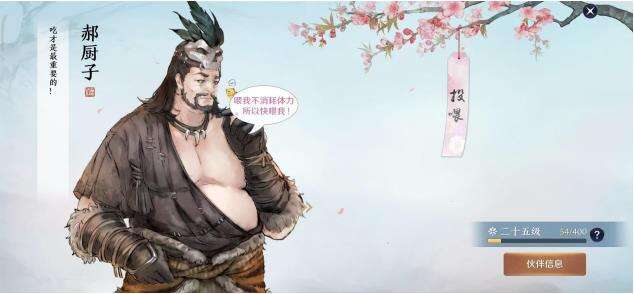 第一天用碎银在商店购买包子给伙伴里面的好厨子送,不会浪费体力,并且好厨子等级提升会给你一定的心法残页、伙伴礼物