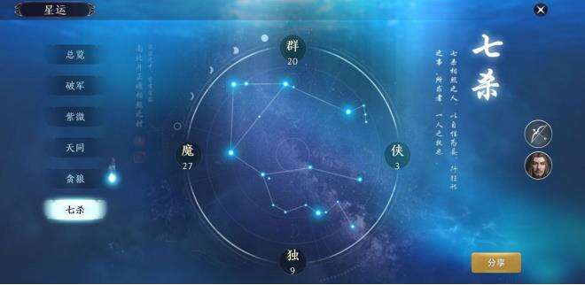 七杀相照之人,以自性为妄,行狂邪之事,所求者,一人之执也。从这句话就可以得出七杀受独,魔两属性影响。贪狼星运对游侠职业就加成效果并且贪狼相照之人可为叶知秋逆天改命。