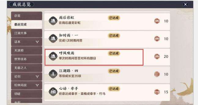 目前时雨答题的题目有传统文学知识以及游戏中的各项知识,少侠答题一次性全对的话,还可以获得成就“呼风唤雨”。万一有题目涉及到知识盲区了怎么办?不用担心,游戏中有向帮派求助的选项,求助规则是什么呢?