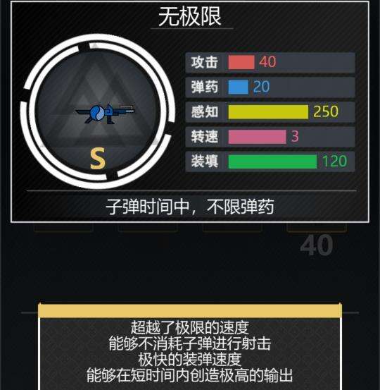 【无极限】为什么选择这种枪配合,因为子弹的弹药时间是无限的,而且极快的装填速度(射速)保证了几乎所有符文都能被吃掉。当然还有其他的枪可以配合,但是这个枪容错率高,适合新手