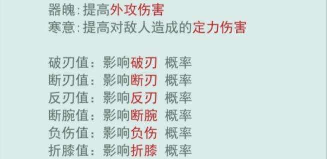 例如:寒意30、负伤值100,洗练后,坚意30、负伤值100