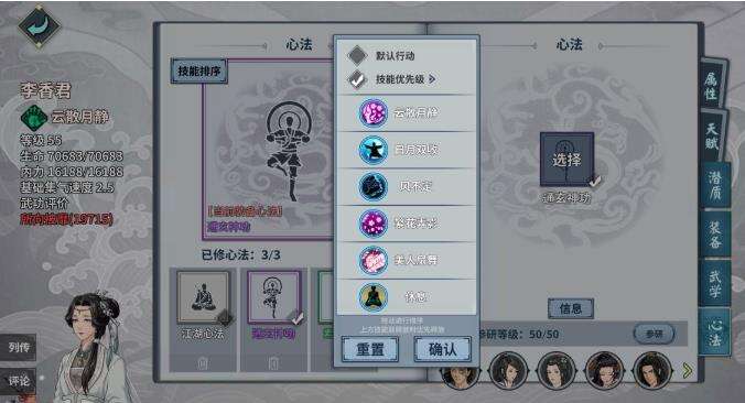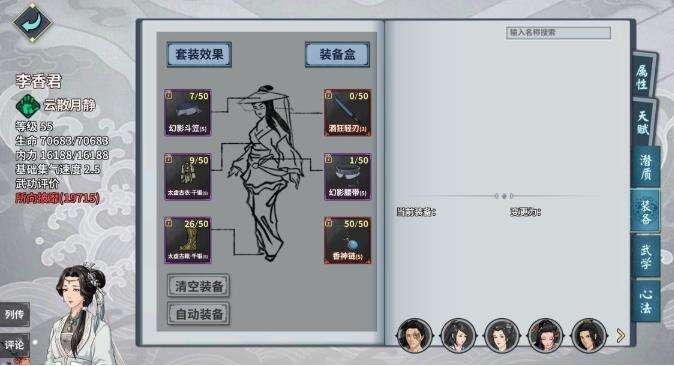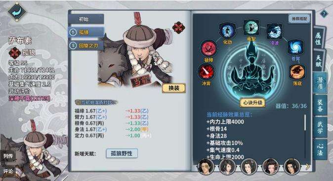 思路是百穴酒狂怒目酣畅全部一起给,怒气肯定攒得快,所以你不用把23技能放在休息后面。一般的攻击也应该放在休息的前面,否则香君ai会苟起来。武学最好打破三个,并可以转移他吸到他的队友的怒气。之所以给她一心,纯粹是因为其他主力位置吃紧,可以保证狼主上半场发挥稳定。