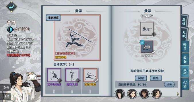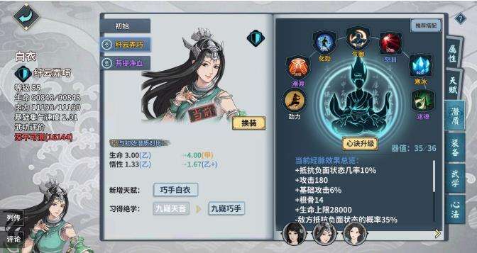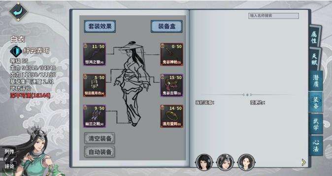 反手控制位——白衣。甲白衣服削弱后很难维持之前的位置,破阵三件套的更换也不能兼顾踏雪鞋和清月。如果用踏雪鞋,就选择了一速辅助控制。如果用清月,就是对面调出压阵的反手效果。白衣被动-1轮buff,让白衣只能用清月保证开局可以释放技能控制对面。全福源洗练保证了足够的怒气。升级鬼谷枪。