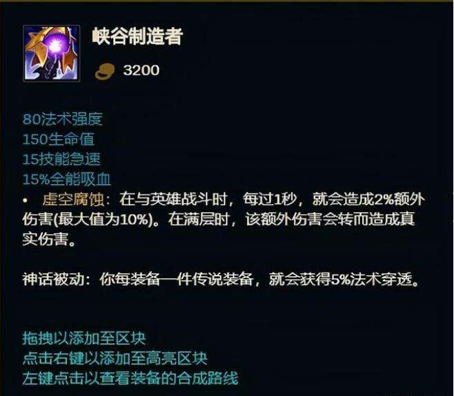 狗熊在改版之后和以前相比有了更强的可操作性,同时在S11赛季有会有更多的玩法,我们平时看到的狗熊都是半肉半输出的出装方式,神话装备首选日炎,但是我们推荐的套路则是要出新装备峡谷制造者,这件装备同时具备法强、血量、技能CD、全能吸血和造成真实伤害,并且后面每多出一件史诗装备就能增加法穿,而狗熊的被动技能也有着AP加成,和峡谷制造者这件新装备搭配起来,无疑会有很高的魔法输出,这个玩法的连招也没有太大的区别,E技能起手接QWARA,即便E技能没有命中伤害也是很高的,在打完一套连招之后可以用全能吸血来完成续航,准备下一轮的换血或者击杀。