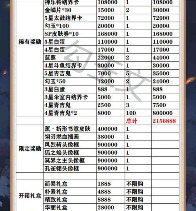 本期按照惯例,我们来汇总一下搬空商店需要多少超鬼王积分