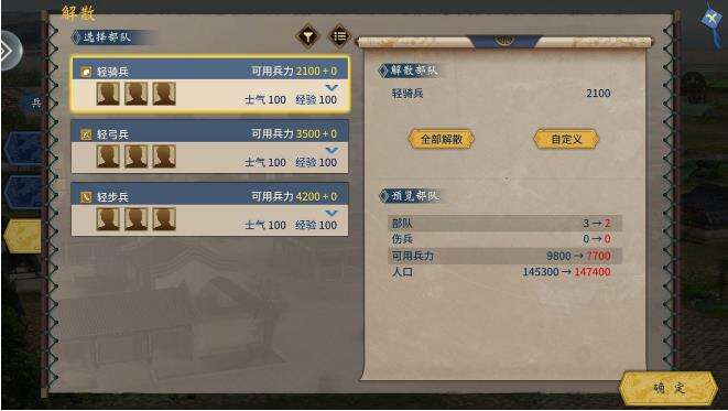首先解散骑兵。骑兵虽然不错,但是前期性价比不是很好。一个高难度的剧本,需要大量的草,所以会养不起的。