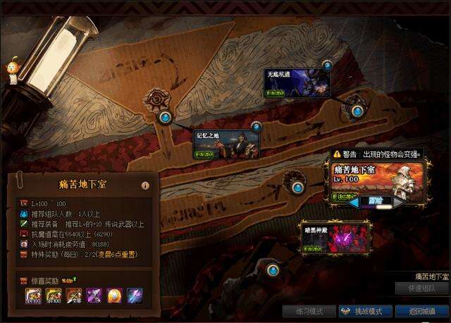 第二个途径就是切斯特小镇的痛苦地下室和暗黑神殿,也就是玩家们口中的日常2+2,相当于每日免费的深渊,爆率和深渊类似,BOSS有几率出史诗装备,并且通关翻牌的时候,有很高的几率翻出史诗装备。