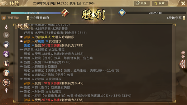 治疗:指战斗中累计恢复的兵力。