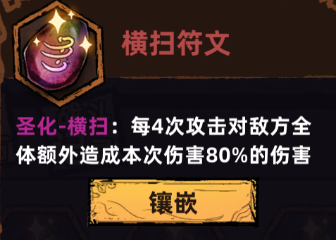 目前有十二种符文,只能生效一个触发类符文(比如横扫)