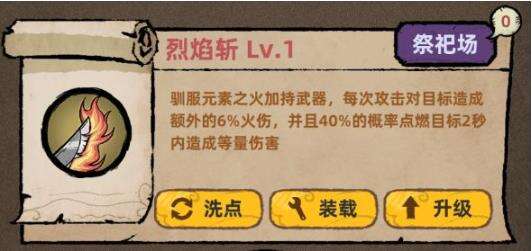 烈焰斩被动技能介绍:每次攻击对目标造成额外的6/8/10/12/14/16%的火焰伤害,当目标以40%的概率被点燃时,在2秒内造成相同数量的伤害。