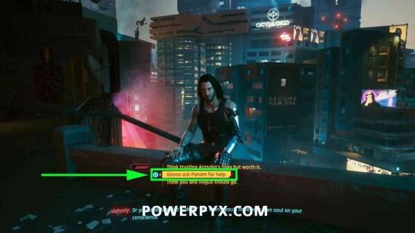 在最终任务【夜曲OP.55 N.1】中,米丝蒂(通灵屋的女孩)会带你去露台,然后你会与【强尼·银手】交谈,在这里的对话选项中选择打给【帕南】,然后选择需要一点时间,有些事情今天必须要做,然后向【帕南】寻求帮助,并服用【欧米茄阻断剂】。