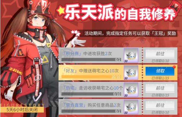 不过最终奖励需要700个王冠宝石,而乐天派的自我修养活动中通过做日常任务一共能领(10+15+15+10)*50=2500王冠,意味着0氪的话也就是差不多40+25=65王冠宝石的水平,领到60宝石那档的10个FULI豪华礼盒,离最终奖励还差700-65=705王冠宝石。