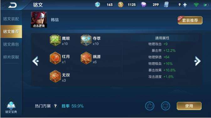 韩信出装比较单一,基本就这一套(一些冷门出装我在这里就不说了哈)名刀可以换破军碎星锤,看个人喜好