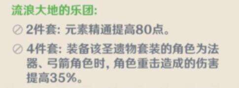 流浪大体乐团套(最佳情况):元素精通,增加重击属性;