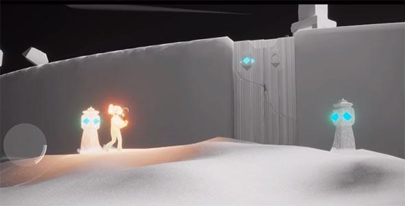 弯弯曲曲的,可以看到这是一个大迷宫,接着我们往左边走,去点亮这盏灯。
