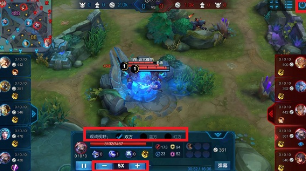 观战可以选择视野、查看出装以及开启加速等等,一般而言会以观战好友的视角去看,当然,如果中途不想看了,可以选择右上角退出按钮,退出观战。