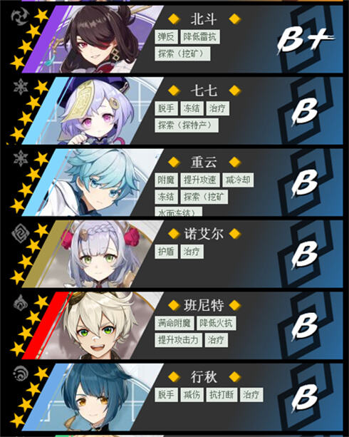 T2强度:北斗、七七、重云、诺艾尔、班尼特、行秋