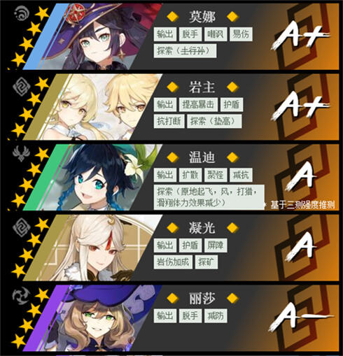 T1强度:莫娜、岩主、温迪、凝光、丽莎