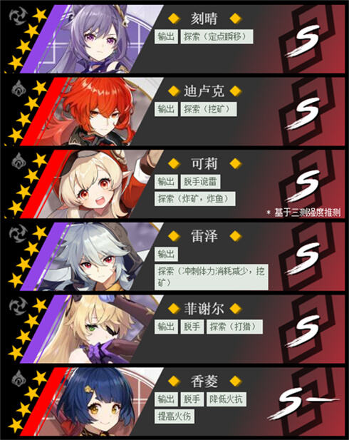 T0强度:刻晴、迪卢克、可莉、雷泽、菲谢尔、香菱