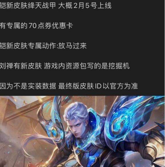 不仅如此,很多爆料博主在向大家偷偷爆料了,铠的这款新皮肤有专属70点券优惠卡,很可能是个传说级皮肤。铠爹要有新皮肤了,刘禅夹子哥也要有新皮肤了,游戏内资源包写的是挖掘机,估计是跟挖掘机元素有关,毕竟也很有可能是传说级皮肤!