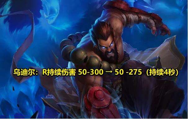 除了装备改动以外,也有很多英雄都遭到了调整,比如是现在非常火热的蜘蛛、奥拉夫、乌迪尔、潘森等等。而其中最受关注的,应该就是刚刚才重新出现在玩家眼中的乌迪尔。