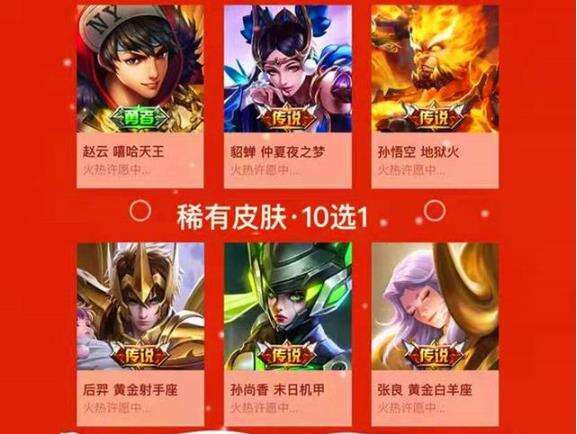 微信区也上线了新年摇心愿的活动,在2月6日到2月8日,玩家可以许下三个愿望,第一个是在10款稀有皮肤中许一个,第二个是在80款普通皮肤中许一个,第三个是在97位英雄中许一个。