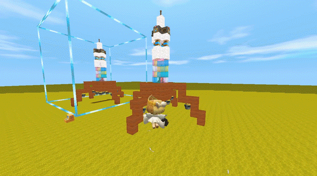 步骤二:小伙伴都知道火星探测器需要巨大的火箭才能推动,所以第一步制作的就是火箭的底部构造,为了让火星探测器飞的更快,这里大神使用的是木质方块来制作底部,首先制作出一个悬空的3*3正方体,然后四面继续使用木质方块建造出火箭的支撑架。