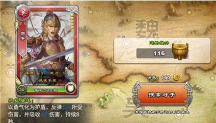 主界面简单明了,右侧是当前战功和搜索对手,左侧是武将的介绍,点击还可翻页,可以帮助主公们了解还未接触过的武将。