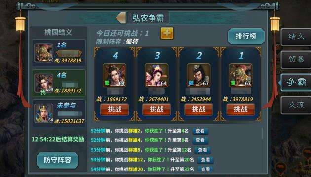2)争霸是争夺更高的排名,每日结算一次争霸排名,获的元宝的道具奖励。