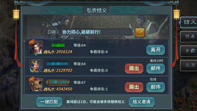 A.结义,可进行匹配、邀请、离开、踢出等操作