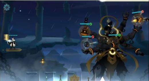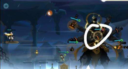 他会召唤五个火球球,朝你飞来,一个一格血,可以砍下来,也可以开盾防御,这里还有升降装置,手速快可以拉一下改变高度躲避球球。