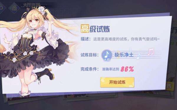 其实说难不难,说简单也不简单,需要极乐净土(大师)的准确率达到86%,也就是判定超完美的数量要达到本歌曲中所有按键判定的86%。相信对大部分玩家来说,这个完成条件都不是什么特别困难的问题,即使是萌新应该多练几次之后也能解锁哦~