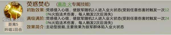 持续两回合,要知道兵力与输出呈现正比,所以一定要嬴政速度大于队伍其他英灵,搭配上陆逊的减少火抗效果。