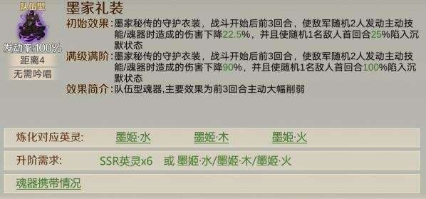 2、墨家礼装这件魂器同样克制主动队伍,前三回合的沉默,一旦控制住敌方主力输出,那么敌方的伤害起码减少一大半,同样连携队伍也一定程度克制主动队伍,只要我爆发比你快,那么就是你倒下。