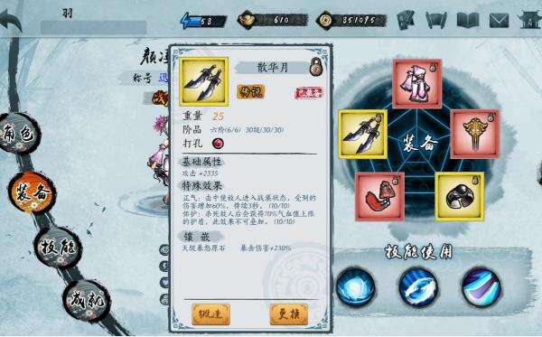 装备选择:武器承影,衣服夜鸢,饰品修罗戒指,红玉蝉,紫檀香囊。双孔冰蚕留着,有大用。抽不到也没关系,后面可以刷。